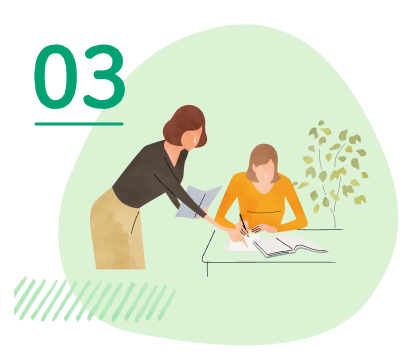 保護者様とスタッフとでお子様の現在の状況を聞かせていただきながら、学習内容や派遣する講師などご要望に沿って相談させていただきます。